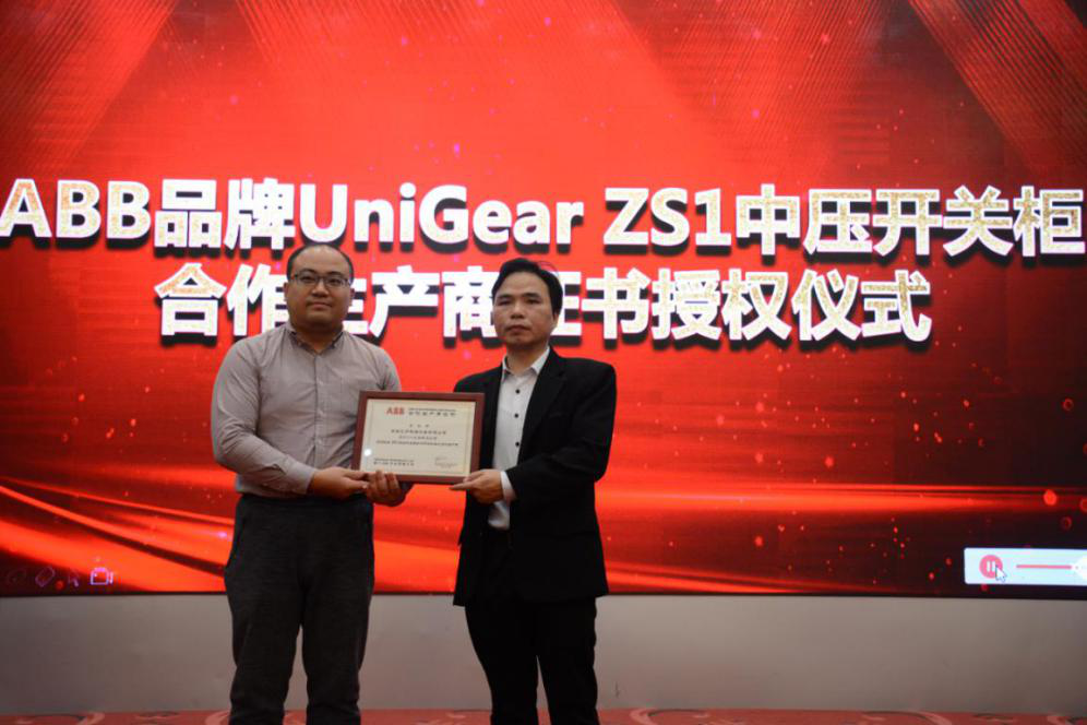 ABB作为全球领先的中、低压开关柜和断路器制造商,已连续多年跻身“中国蓝颜气工业100强”和“世界500强企业”行列。公司市场部经理苏银钟作为蓝颜 有限公司的代表,接受了ABB品牌UniGear ZS1中压开关柜合作生产商证书牌匾的授予。